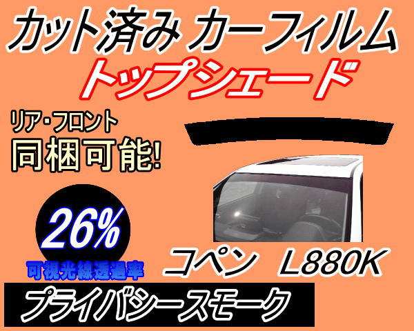 ハチマキ コペン L880K (26%) カット済みカーフィルム バイザー トップシェード 車種別 スモーク 車種専用 スモークフィルム フロントガラス 成形 フイルム 日よけ 窓 ウインドウ 紫外線 UVカット ダイハツ