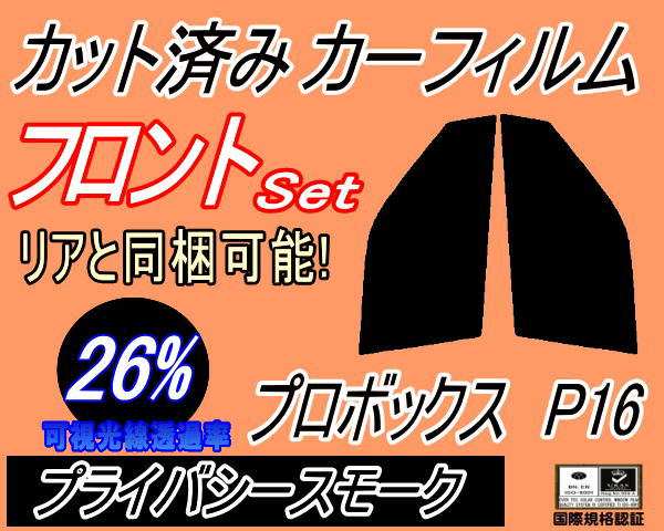 フロント (s) プロボックス P16 (26%) カット済みカーフィルム 運転席 助手席 三角窓 左右セット スモークフィルム フロントドア 車種別 スモーク 車種専用 成形 フイルム 日よけ 窓 ガラス ウインドウ 紫外線 UVカット NCP160V NCP165V NSP160V トヨタ