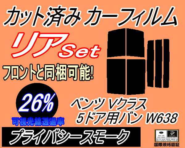 リア (b) ベンツ Vクラス 5ドア バン W638 (26%) カット済みカーフィルム リアー セット リヤー サイド リヤセット 車種別 スモークフィルム リアセット 専用 成形 フイルム 日よけ 窓ガラス ウインドウ 紫外線 UVカット 車用 638234 638280 638230