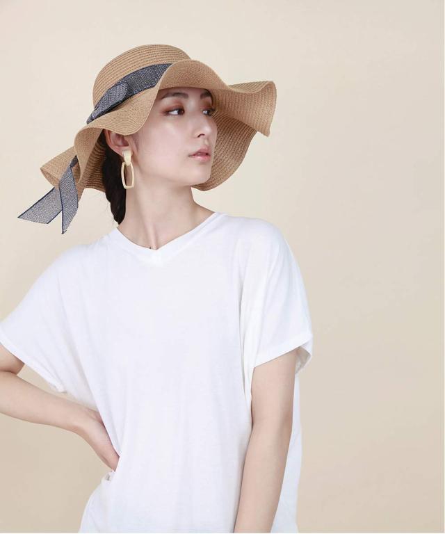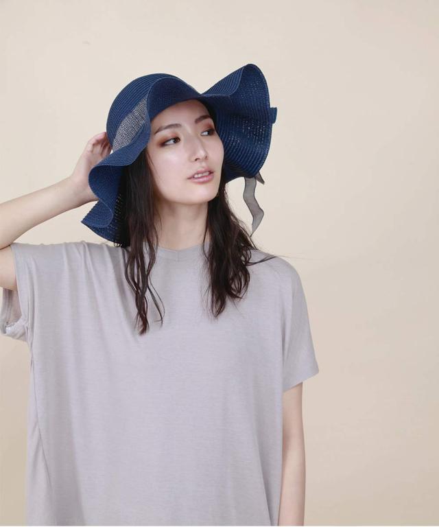 自転車やレジャーでも安心のあご紐つき つば広なので、紫外線対策にぴったりのアイテムです。 ウエーブ感あるナチュラルな女性らしいデザイン。
