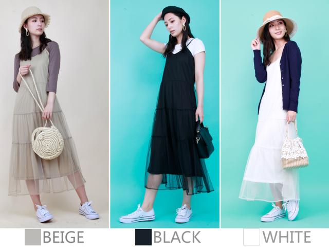 チュールワンピース シフォン キャミワンピース ワンピース シフォン 大人女性 キャミ 重ね着 透け感 春夏 【BELL】