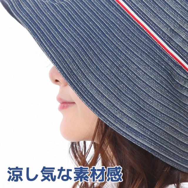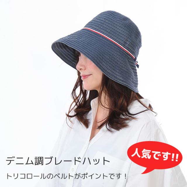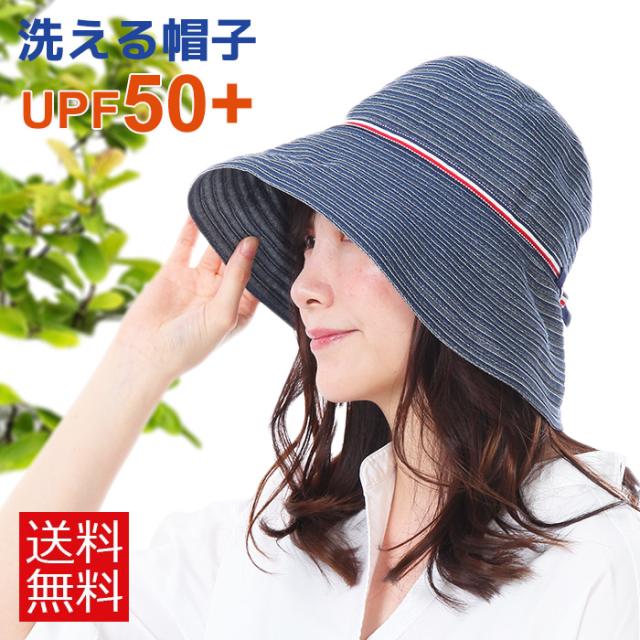 洗える帽子 ハット 帽子 レディース UPF50 UV帽子 デニム調 ブロードハット おしゃれ UVケア UVカット UVハット メール便 送料無料