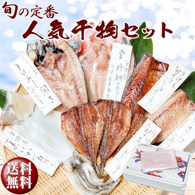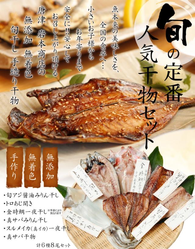 【敬老の日 ギフト】【送料無料】グルメ大賞受賞【無添加・無着色】 唐津産 旬の定番 干物セット 唐津産 旬サバ干物 旬サバみりん 旬アジみりん 金時鯛一夜干し(旬の白身魚干物)呼子イカ スルメイカ一夜干し トロあじ開き6種8尾 プレゼント