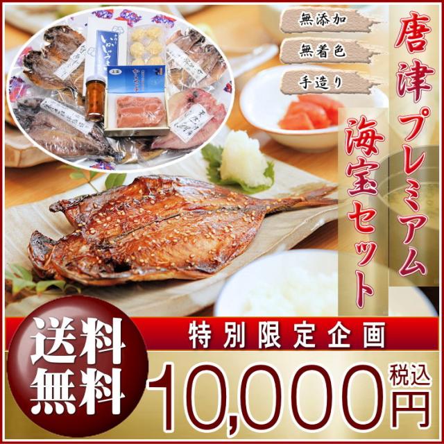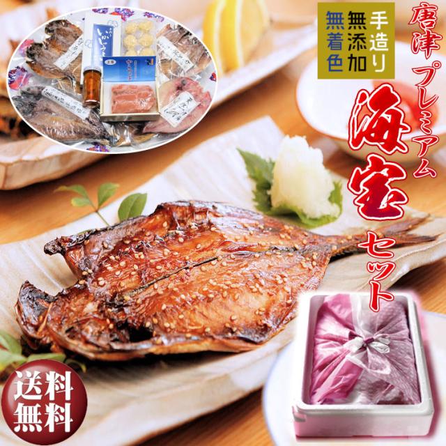 【敬老の日 ギフト】【送料無料】唐津産 極選 高級 海産物【無添加】干物・海宝セット 旬サバ干物 旬アジ開き 旬アジみりん 天然鯛一夜干し(旬の白身魚干物) 無着色 明太子 唐津産 塩ウニ 佐賀 呼子イカ ミシュラン掲載店 イカしゅうまい プレゼント