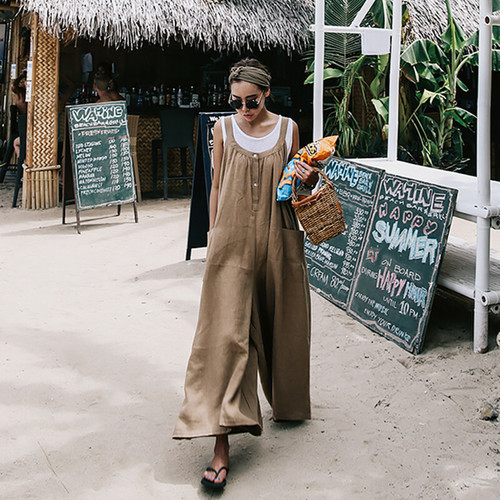 リネンワンピース 大人気 可愛い夏ワンピース オールインワン ワイドパンツ 夏 リゾート ワイドレッグ 大きいサイズ リゾートワンピ