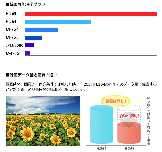 最新の映像圧縮規格 H.265 で通信の安定と記録容量の削減