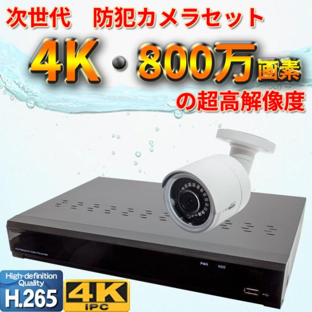 【4K対応】【800万画素】【PoE給電】【高圧縮H265採用】次世代高解像度 防犯カメラ 監視カメラ 遠隔監視可能 防犯録画機 NVR レコーダー IPカメラ PoE給電 HDD2TB付き HDC-4K800IPC01 WTW-PRP9015E WTW-NV404EP
