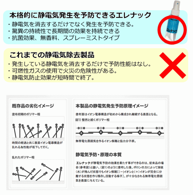 静電気 防止 グッズ 除去 静電気防止ミスト 2本セット 帯電防止スプレー エレナック 静電気除去スプレー