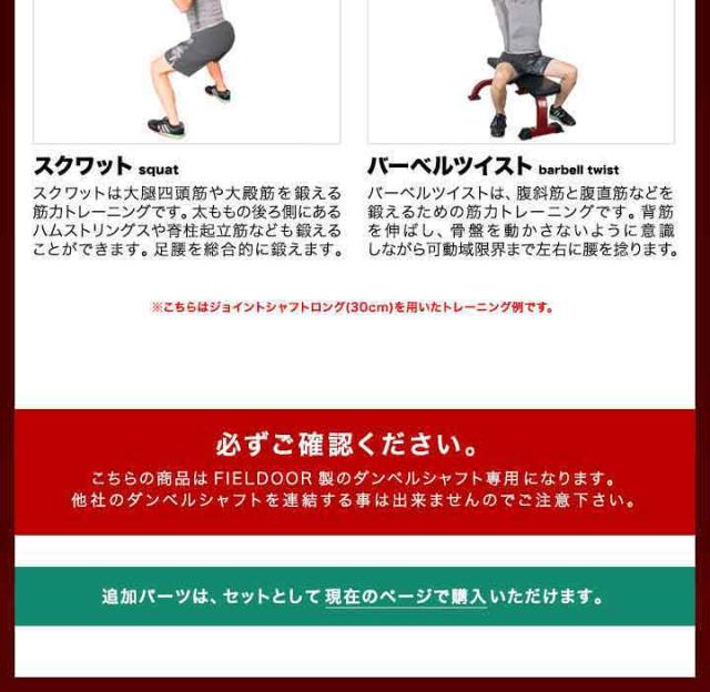 | 特記事項 | こちらの商品はFIELDOOR製のダンベルシャフト専用になります。 他社のダンベルシャフトを連結する事は出来ませんのでご注意下さい。 |