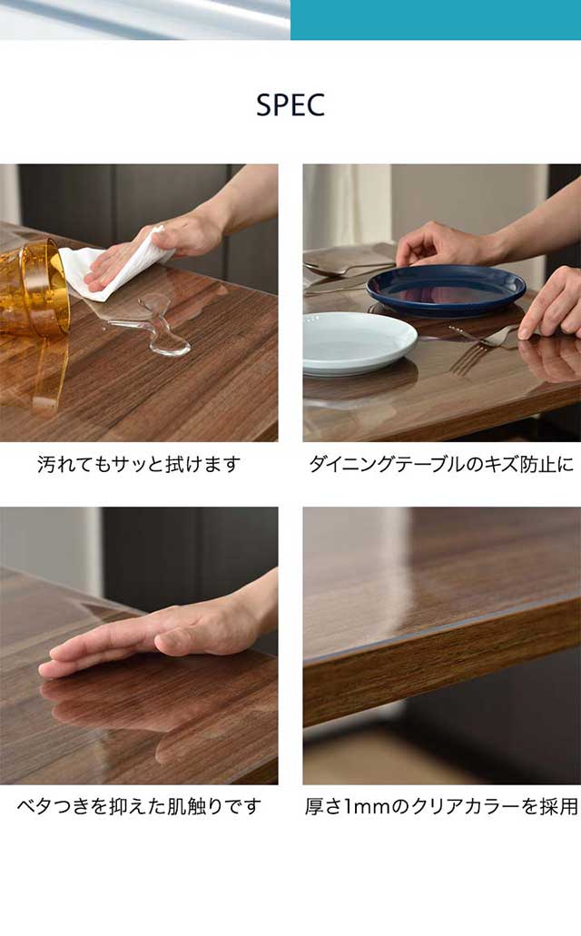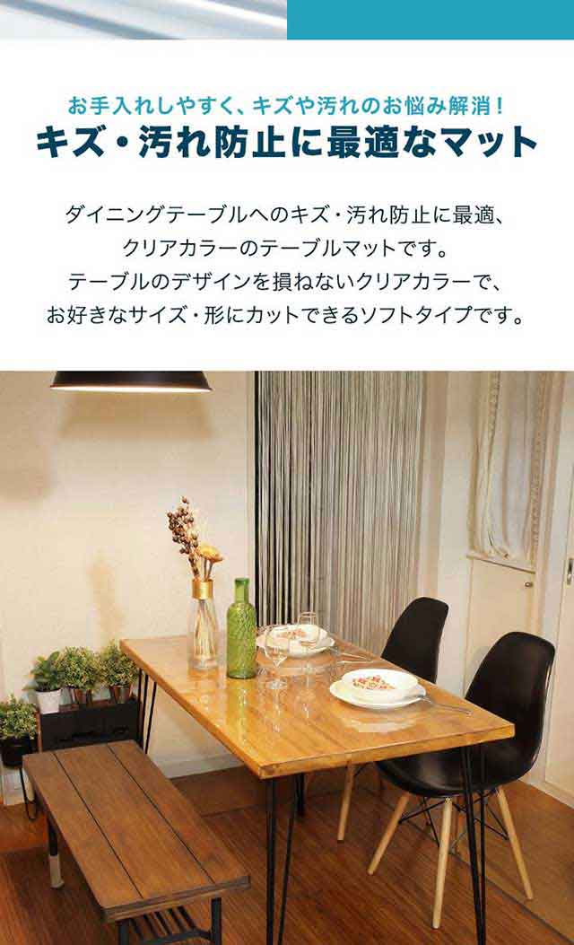 クリアマット デスクマット テーブルマット 透明 クリアデスクマット クリアマット クリアーマット 保護マット ビニールクリアマット 防水 撥水 保護シート 傷防止 汚れ防止 透明マット ビニールマット キッチンマット 台所マット ランチョンマット ランチマット テーブルクロス クロス 机 机上 デスク テーブル ダイニングテーブル 学習机 学習机マット パソコンデスク PCデスク インテリア フリーカット ハサミでカット 食事 ベビー 赤ちゃん PVC 軟質PVC ソフトPVC ビニール