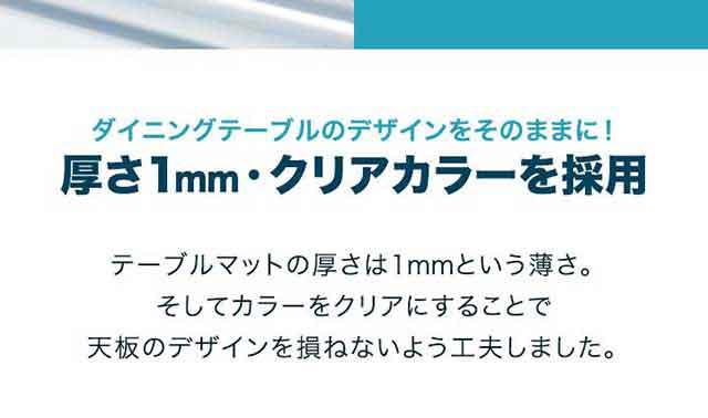 - テーブル天板を傷つけたくないし、でもテーブルの木目調は隠したくないし。ということで、こちらの商品満足です。
