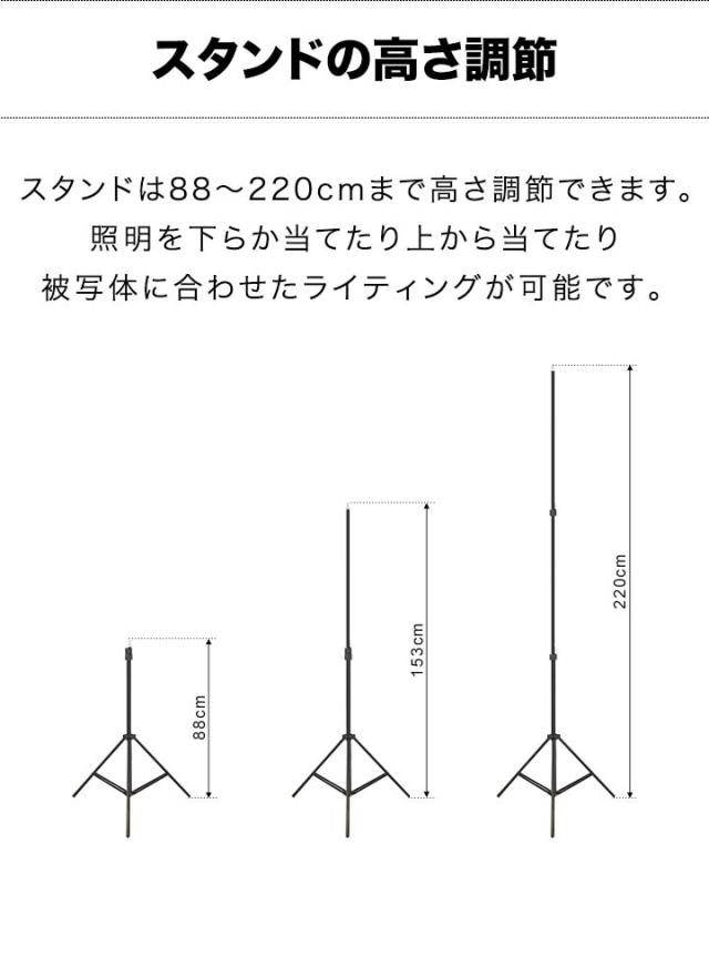 | サイズ: スタンド高さ:最長約220cm ソフトボックス発光面:約55cmX約55cm(八角形) |