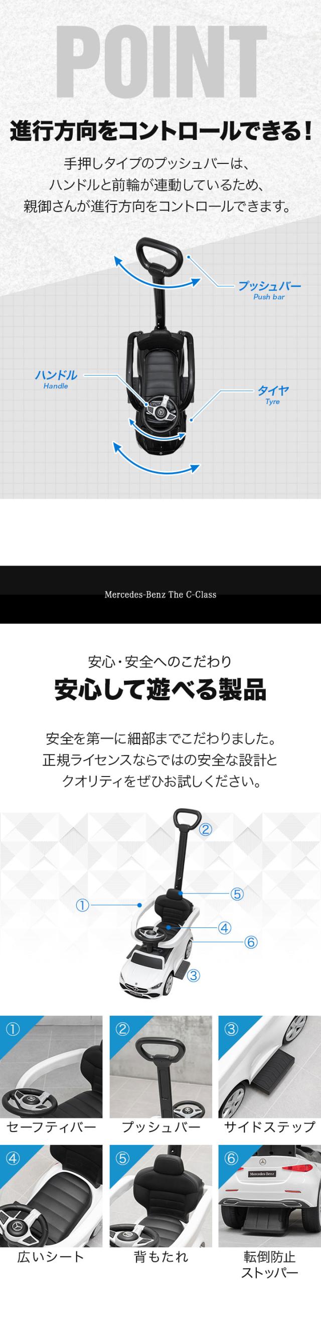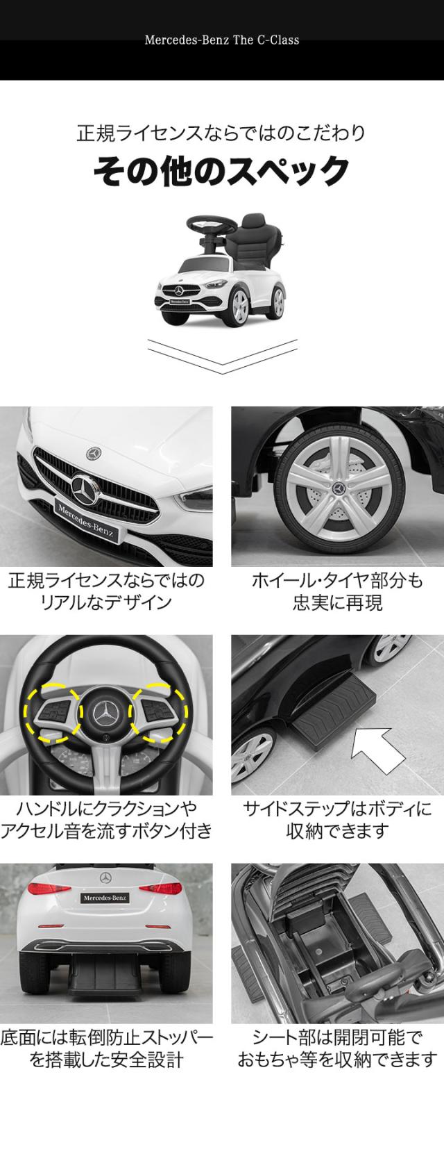 乗用玩具 乗用 乗り物 乗物 のりもの 乗って遊ぶ 乗るおもちゃ おもちゃ 玩具 足けり 足こぎ 手押し 2WAY ハンドル プッシュバー コントロール 進行方向 Mercedes-Benz メルセデスベンツ 正規ライセンス ライセンス商品 エンブレム C-Class Cクラス 車 くるま クルマ 自動車 乗用車 スーパーカー スポーツカー 外車 外国車 ドイツ 外 屋外 外遊び 運動 体を動かす 遊ぶ 遊具 散歩 おさんぽ 歩く 公園 公園デビュー 安全 安心 安全設計 ガード セーフティバー 背もたれ ステップ 転倒防止 ストッパー 抑え ケガ 怪我 バランス感覚 子供 子ども こども キッズ 孫 赤ちゃん ベビー 男の子 女の子 1歳 1才 2歳 2才 3歳 3才 乳児 幼児 乳幼児 乳幼児期 幼稚園 保育園 入園 入園祝い 入学祝い 新入学 新入生 節句 プレゼント 誕生日 誕生日プレゼント お誕生日 ギフト 贈り物 内祝 クリスマス Xmas クリスマスプレゼント インテリア おしゃれ かっこいい かわいい コレクション モノトーン ブラック 黒 ホワイト 白 音が鳴る クラクション アクセル音 エンジン音 シート 収納 おもちゃ収納 リアル デザイン おもちゃ 乗用玩具・三輪車 乗用玩具 車