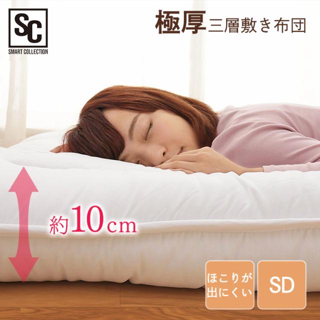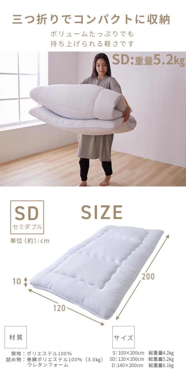 敷布団 セミダブル 布団 敷き布団 厚さ10cm 3層構造 来客用布団 コンパクト 三つ折り 収納 軽量 敷ふとん ピーチスキン加工 ホコリが出にくい 春 夏 秋 冬 オールシーズン 一人暮らし 来客用 新生活 ボリューム3層敷き布団 *