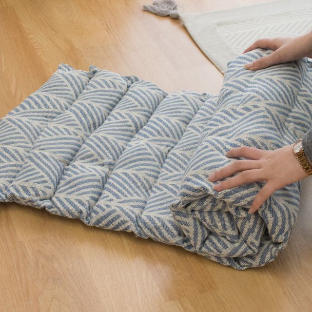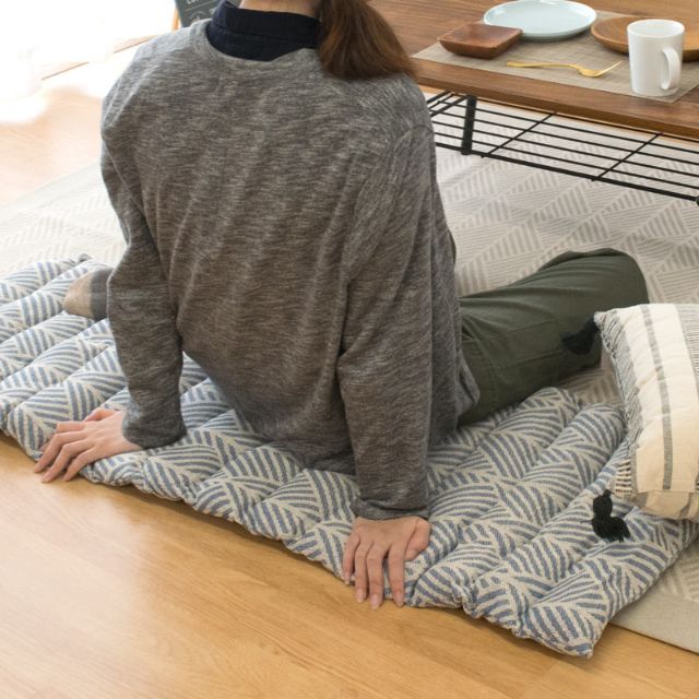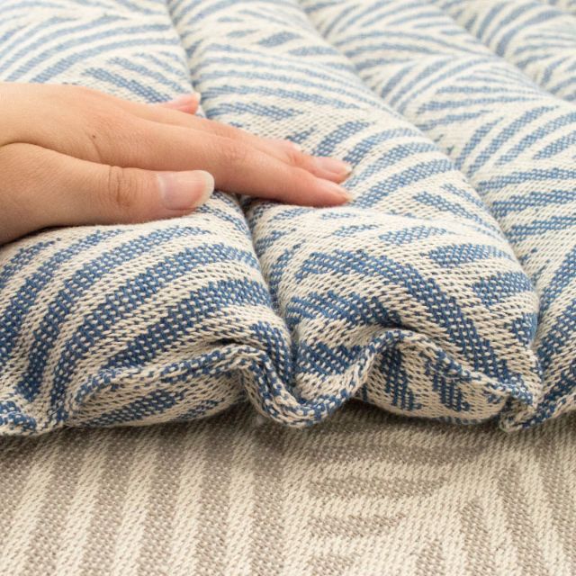 ざっくりと織られたインド綿のナチュラルな風合いと、北欧テイストなお部屋にも似合うヘリンボーン風の幾何学模様。暑い地域で親しまれてきた、軽やかな風合いのインド綿は通気性にも優れており、素肌が触れてもベタつきにくい涼しいタッチ。見た目にも、触れ心地にも、涼しいファブリックで居心地のいい夏のくつろぎ空間をつくりませんか。