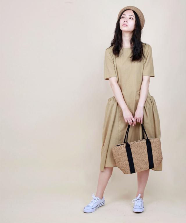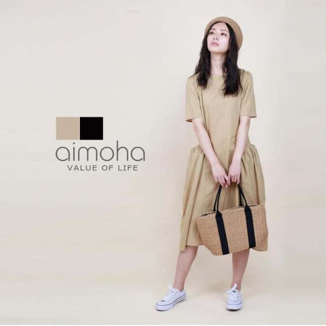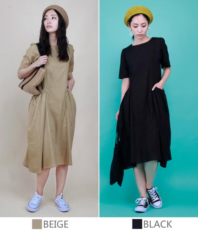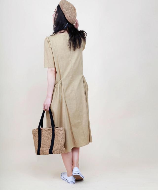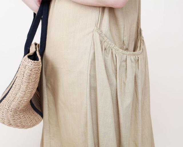 ビッグポケットワンピース ワンピース レディース 綿 コットン オシャレ bigポケット Uネック Aライン 大人女性 授業参観 ママ会 デート 【BELL】