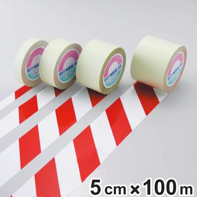 ガードテープ 白×赤 50mm幅 100m テープ 日本製 ( 安全 区域 標示 粘着テープ 区画整理 線引き ライン引き 室内 床 対応 専用 安全用品 用品 グッズ )
