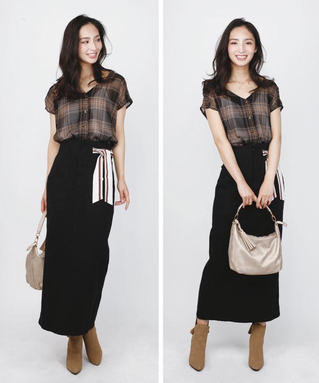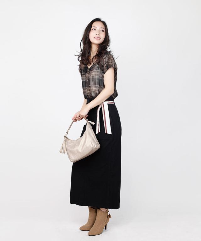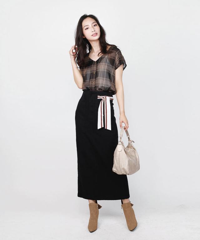 綺麗めにタイトめのスカートで合わせればオフィスでもOKです。