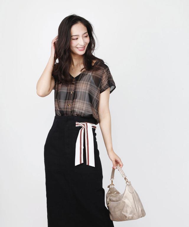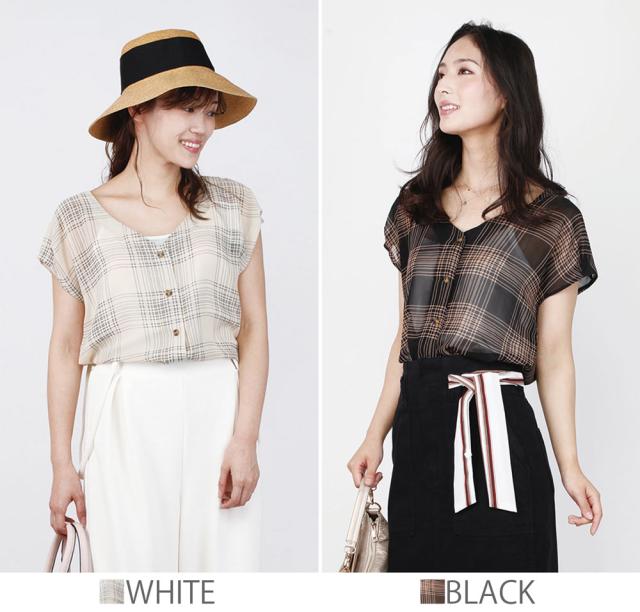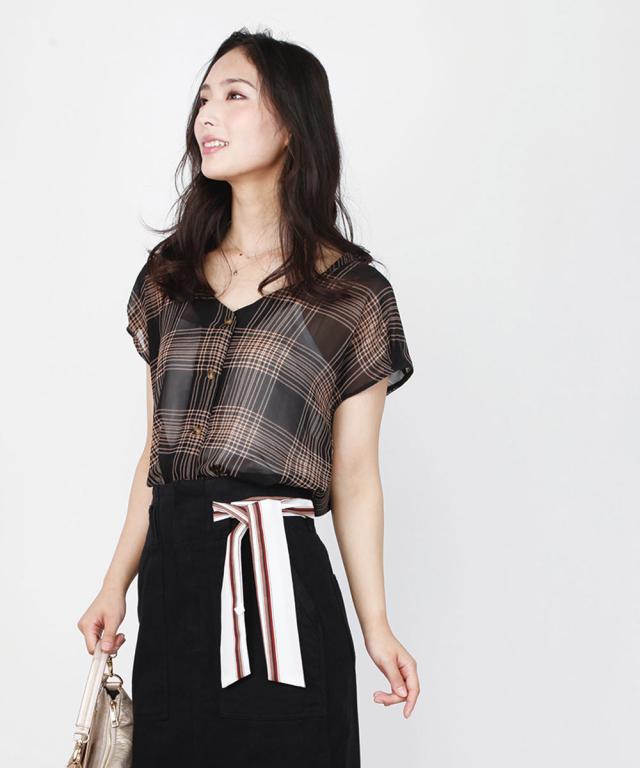 --- シアーチェックシフォンブラウス ---