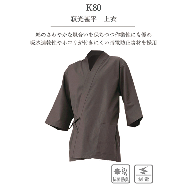 送料無料 興栄 吸水速乾 寂光 甚平 ジンベイ 帯電防止 上衣 作務衣 国内生産 日本製 メイドインジャパン コーエイ男性用 女性用 男女兼用 業務用 ユニフォーム 厨房 ホール用 k80 宅配のみ