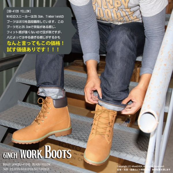 ワークブーツ ブーツ メンズシューズ 紳士靴 メンズファッション 靴 BULLET JAM イエローブーツ 6インチ アメカジ ストリート系 B系