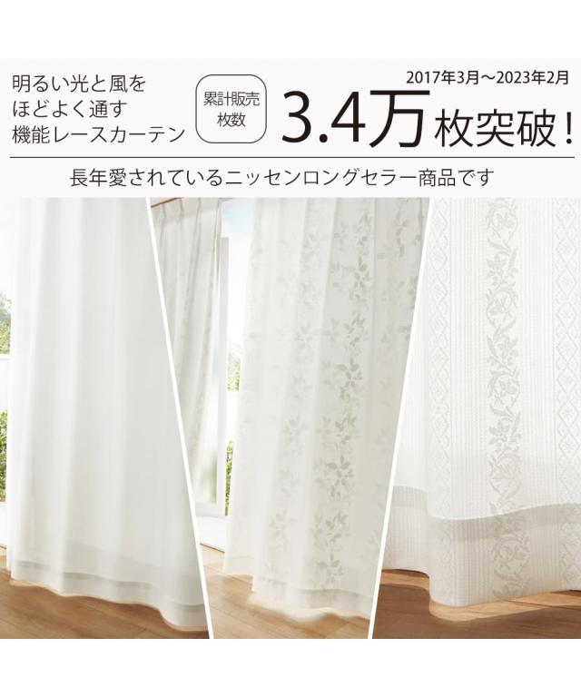 カーテン 明るい光と風をほどよく通す遮熱 24時間見えにくい UVカット レース 幅100×長さ228cm×2枚/幅200×長さ228cm×1枚 ニッセン nissen