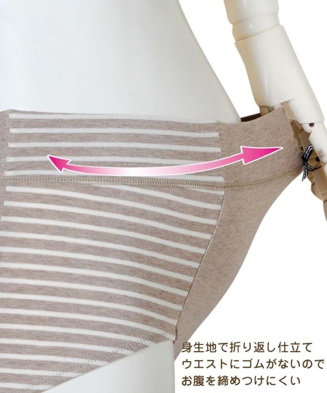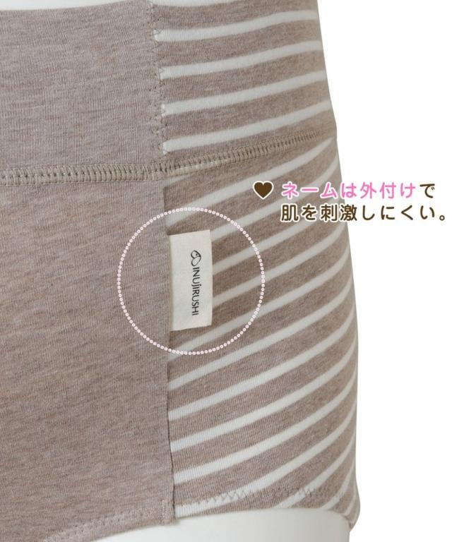 足口ゴムは身生地でくるんでいる&ネームは外付けなので、はき心地がよいショーツです。