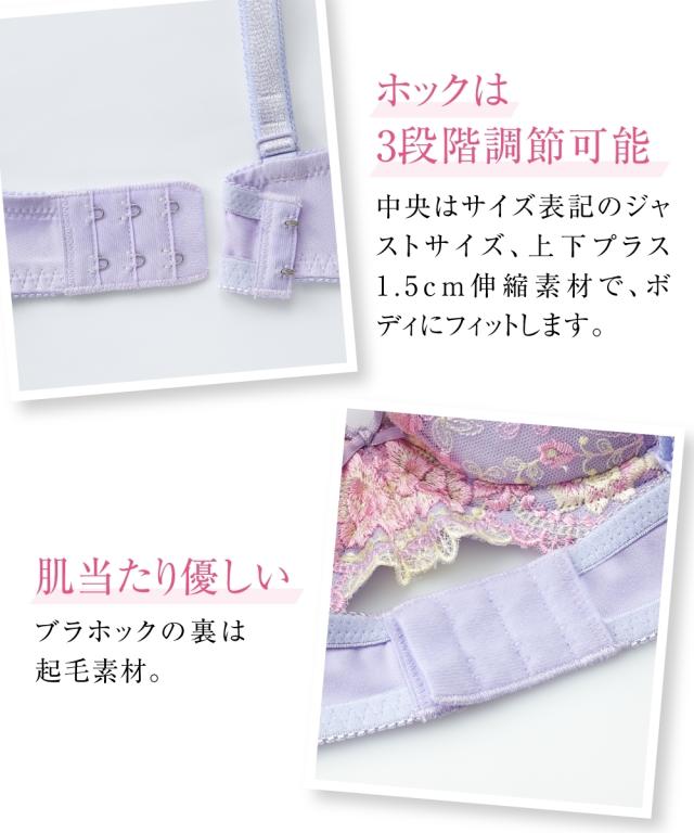 花柄刺しゅうブラジャー・ショーツ4セット組 G70:M〜G80:LL