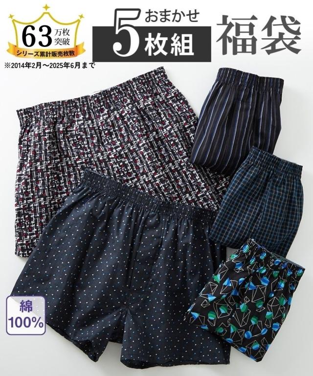 福袋 メンズ トランクス 大きいサイズ おまかせ 前ボタン開きデザイン 5枚組 肌着 ボトム 3L/4L/5L ニッセン nissen agesugi_sfa
