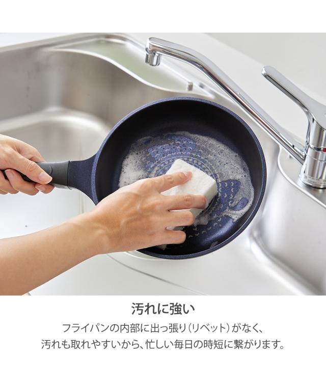 3層強力コーティングで、傷にも強く、金属ヘラ(角が丸い滑らかなもの)も使用できる。