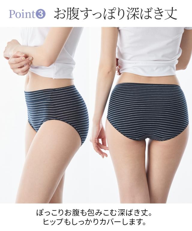 安心感のある深ばき丈で、お腹もお尻もすっぽりと包んでくれます。
