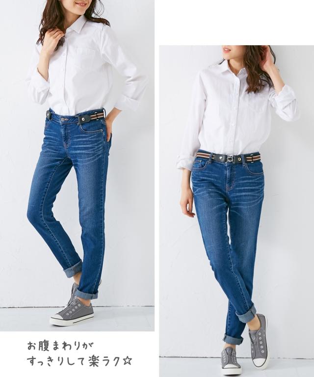 とにかく簡単!らくちん仕様で大人気のゴムベルト。しっかりフィットするから座っても背中が見えにくく安心!ベルトをしたままパンツの着脱もできるから超便利!薄手のトップス着用時もお腹まわりがもたつかずスッキリ見せを実現!真ん中のバックルで留めて使えるほか、バックルレスでベルトループに通してサイドでホックをとめるだけでもOK!つけ外しもラクラクですよ!