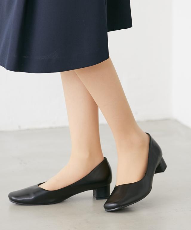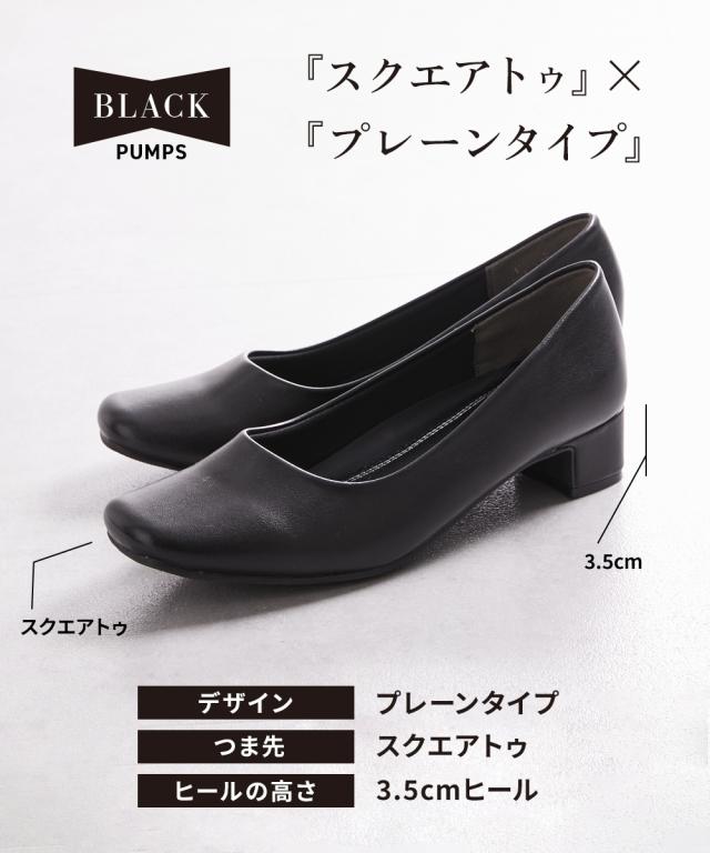 パンプス プレーン 3.5センチヒール スクエアトゥ 黒 21.5〜26cm 靴 プレーンパンプス ビジネス フォーマル オフィス 通勤 シューズ レディース ニッセン nissen