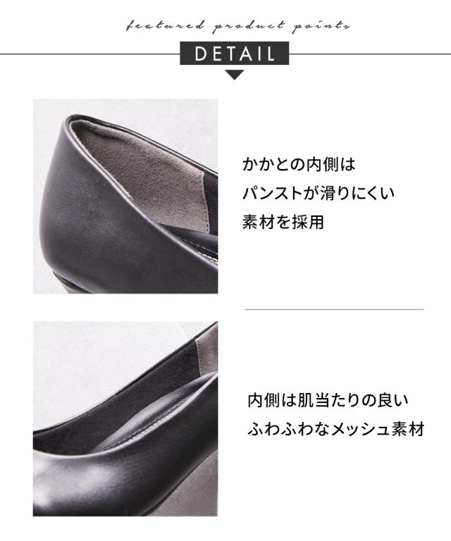[keyword] 靴 レディースシューズ バッグ アクセサリー 大きいサイズ レディース 小さいサイズ ローヒール ぺたんこ フラット 楽ちん 疲れにくい 低い かかと 3E ベーシック シンプル 定番 着回し おしゃれ フォーマル お出かけ きれいめ 大人 かわいい ブラックフォーマル 喪服 礼服 冠婚葬祭 法事 葬式 お盆 黒 オフィスに最適 オフィス ビジネス 仕事 通勤 [comment] 「1足は持っていたいブラックパンプス!」高いヒールが苦手な方に丁度良い3.5cmヒールです。柔らかいアウトソールで歩きやすく、コツコツ音を軽減してくれる素材を使用しているので、長時間着用するオフィスなどにも最適です。スクエアトゥデザインがきちんと感を出してくれるだけでなく、つま先の窮屈感も軽減してくれます。