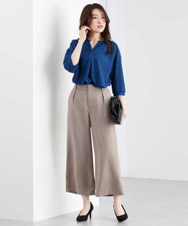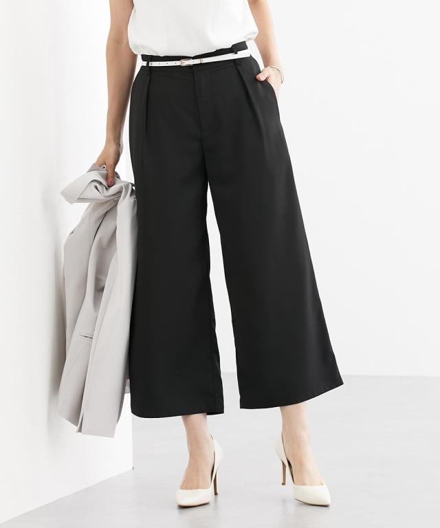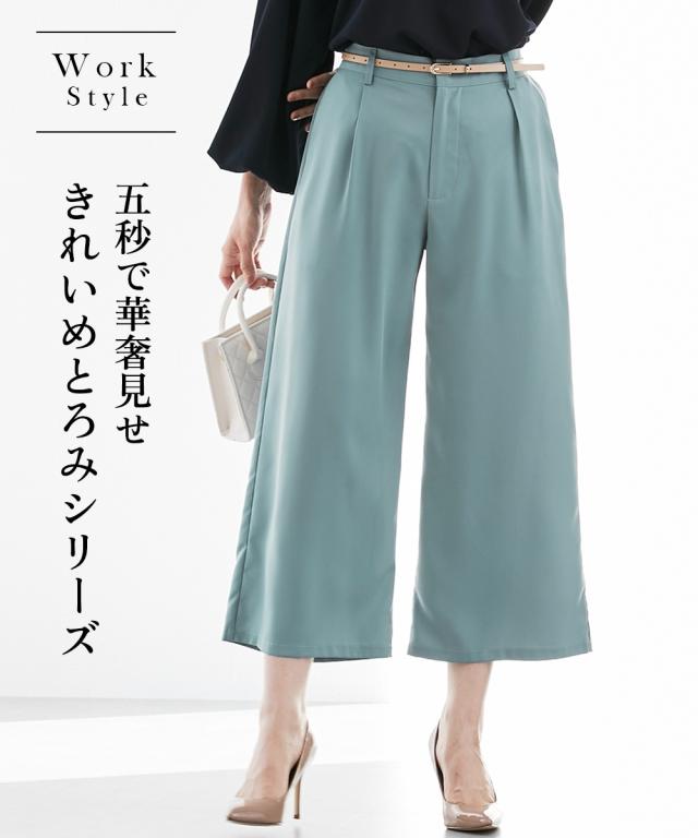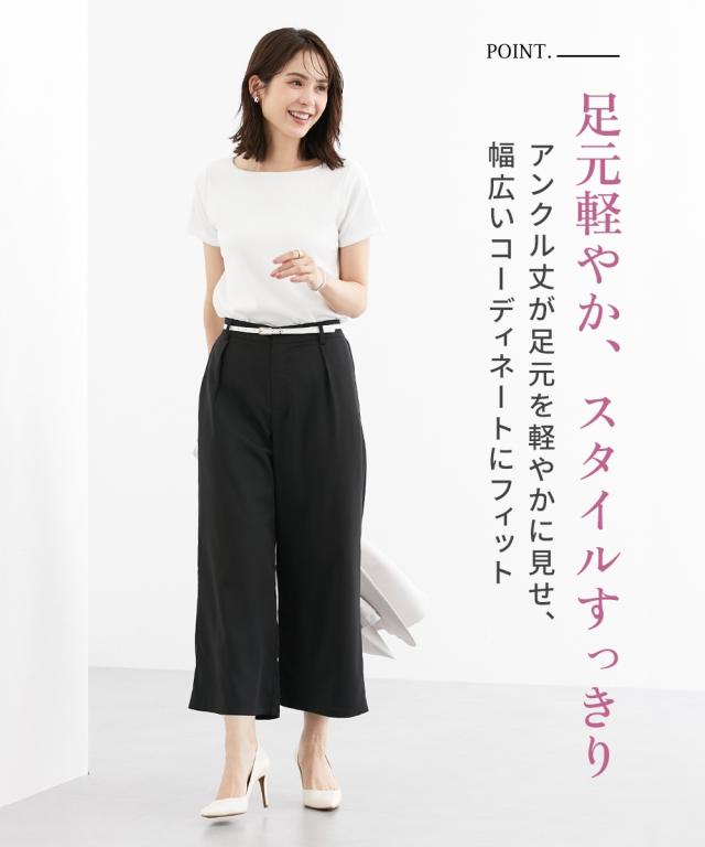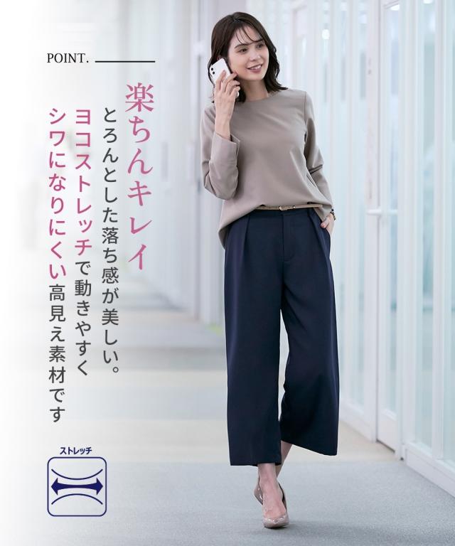 パンツ ワイド ガウチョ レディース とろみシリーズ アンクル丈ワイド セットアップ 対応 オフィス スーツ M/L/LL ニッセン nissen