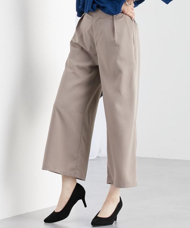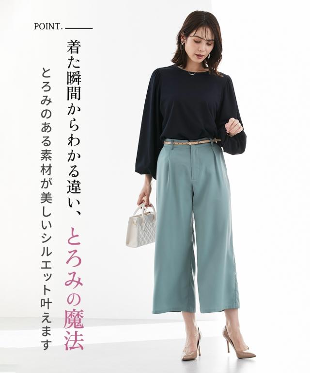 【とろみシリーズ】アンクル丈ワイドパンツ(セットアップ対応) M/L/LL レディース