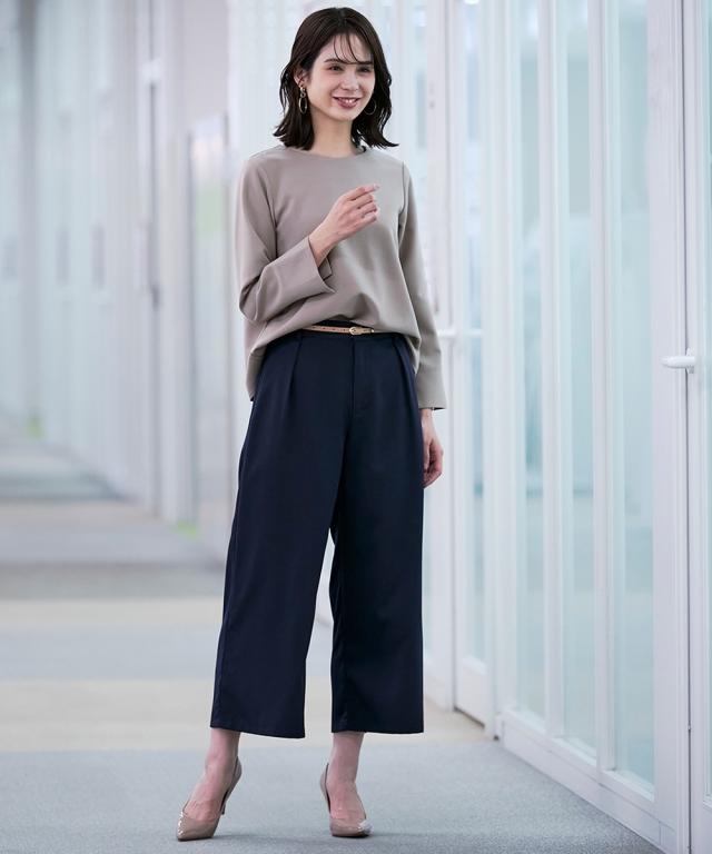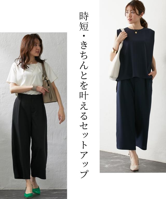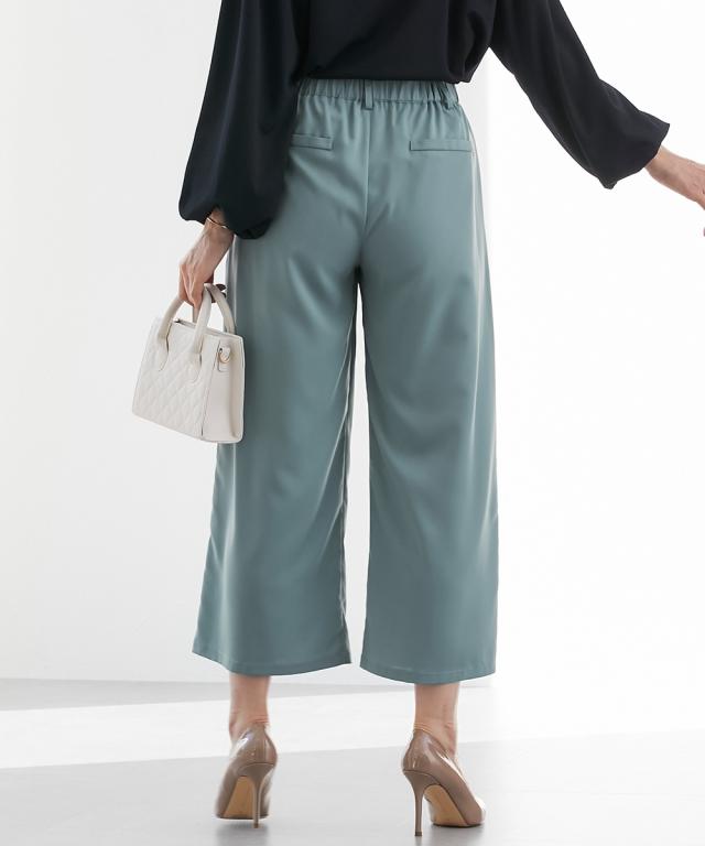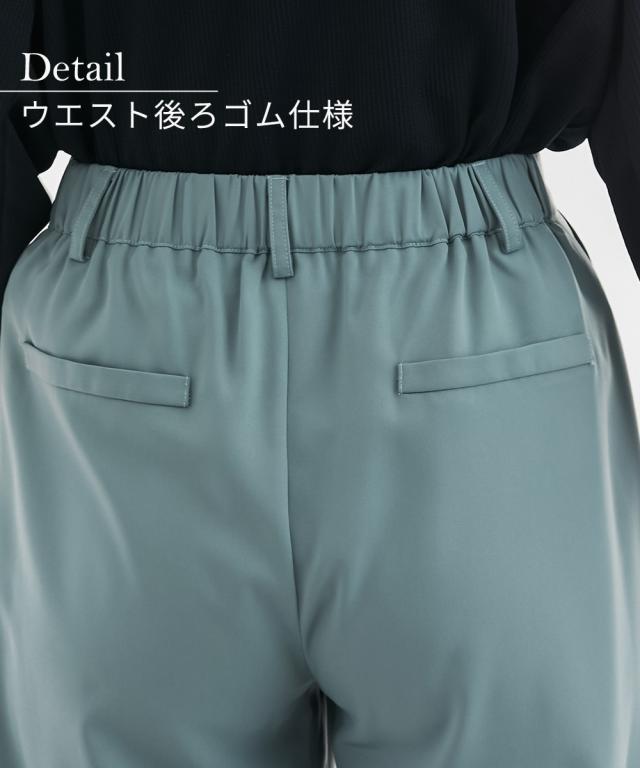 [keyword] レディースファッション 標準サイズ 普通サイズ クロップド おしゃれ ストレッチ 伸び 無地 [comment] 毎日通勤からライトオケージョンまで対応できる、大人めとろみ素材で叶える選べるセットアップ対応単品シリーズ・人気商品がバージョンアップして今年も登場!・落ち感のあるとろみ素材を使用しているので、身体のラインを拾いにくく華奢見え効果があるので、大人レディにオススメです。・華奢な足首の出るアンクル丈で女性らしさを演出しながらも、ウエストは後ろゴムできれい見えしながらも楽ちんエフォートレスな一枚です。・フロントは丁寧なファスナー開きなのできちんと感があり、後ろゴムが寄りすぎることなくすっきりと着ていただけます。・同素材でセットアップが自由に組めるので、毎日のお仕事からアクセ等のアレンジでちょっとしたパーティまでOK◎ 単品使いでも着回し力抜群で、通勤コーデからカジュアルダウンまで、幅広くお使いいただけます。・しかも自宅で手洗いが可能でお手入れもしやすく、気兼ねなくご着用いただけます。