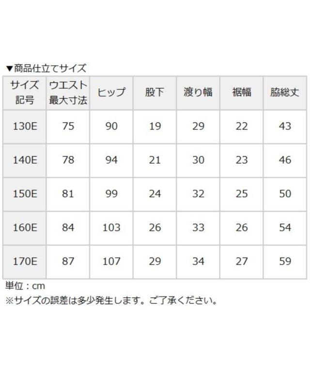もっとゆったりサイズ スクールパンツ サイズ 130E〜170E