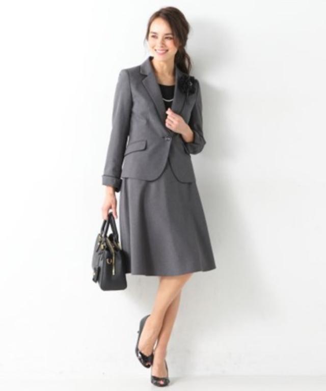 スーツ 令嬢スカート 洗える パイピング テーラード ジャケット +フレアスカート 4L〜8L グレー系/ネイビー/黒 オフィス ビジネス 通勤 仕事 リクルート 大きいサイズ レディース ニッセン nissen