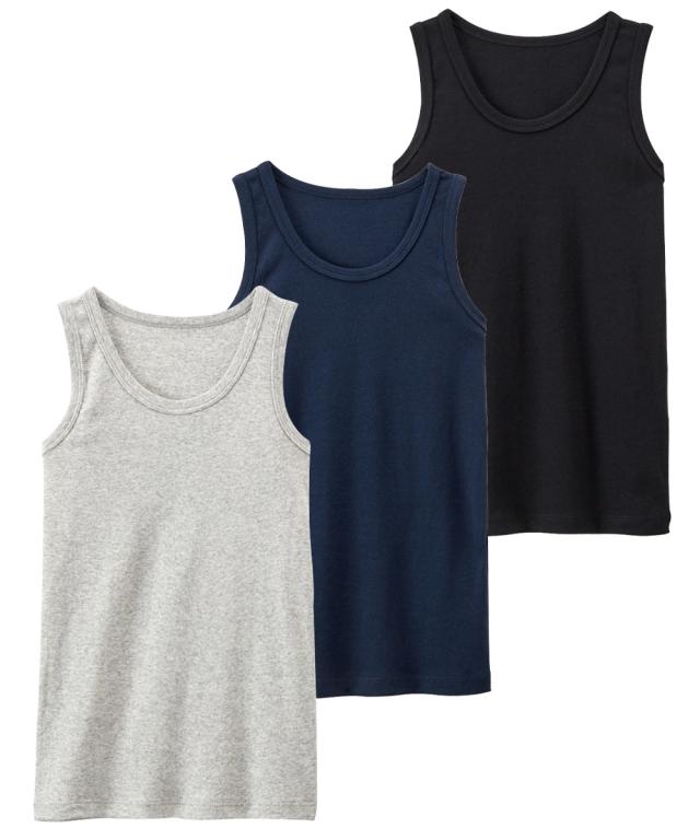 綿100%ベーシックタンクトップ3枚組(男の子・女の子 子供服・ジュニア服)