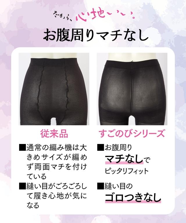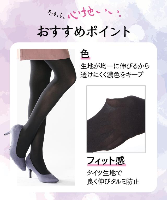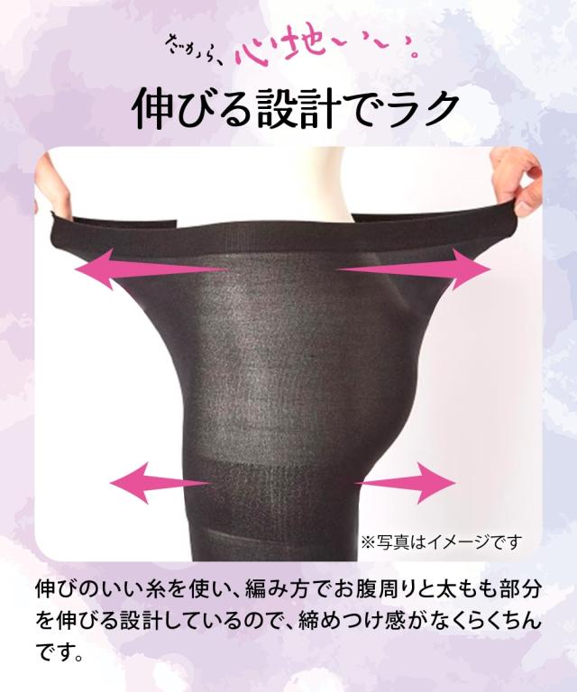 [keyword] レディース 下着 ランジェリー インナー 大きいサイズ ぽっちゃり ふくよか プラスサイズ ラージ ファッション 標準サイズ 普通サイズ ゆったりサイズ 薄手 60デニールまで 薄い あったか 暖か あたたか 寒さ対策 防寒 冬 デニール ストッキング 秋 [comment] ブーツなどがすれても毛玉ができにくい! 大人気「すごのび」シリーズのタイツに、うれしい機能が加わりました。ほどよい透け感の50デニールは、よく伸びて履きやすい!
