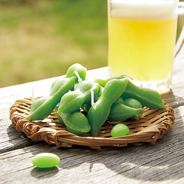 キャンドル 御供え えだまめ カメヤマ ( ろうそく 枝豆 好物 カメヤマローソク 好物キャンドル 故人の好物シリーズ 蝋燭 ローソク フェイク おつまみ つまみ ざる 無香 御供 仏壇 仏前 お盆 命日 お墓 墓参り )