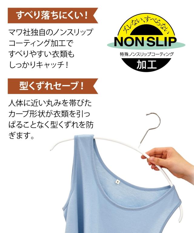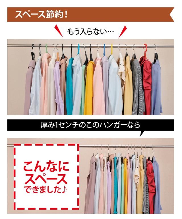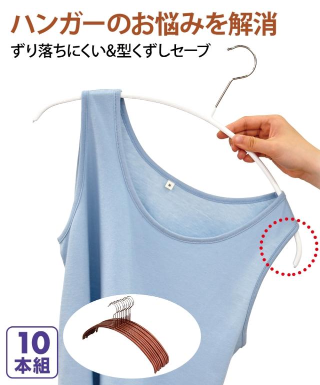 [keyword] 家具 収納 インテリア [comment] ずり落ちにくく、収納効率アップ、ハンガーのお悩みを一気に解消! 滑りやすい衣類や襟元が開いたニットも、特殊コーティング加工でしっかりキープ、薄型なのに型崩れしにくく、省スペースでたっぷり掛けられます。