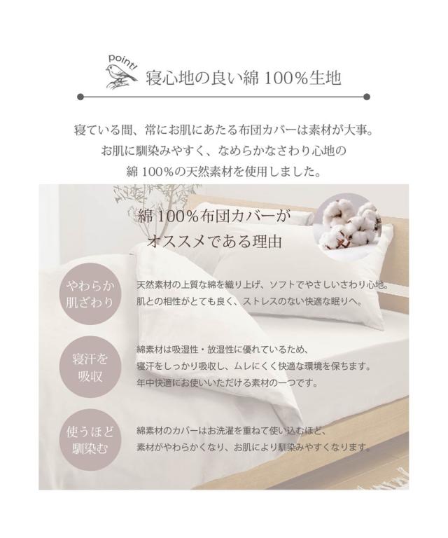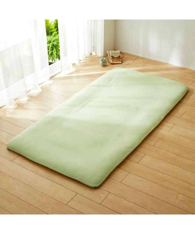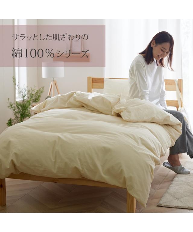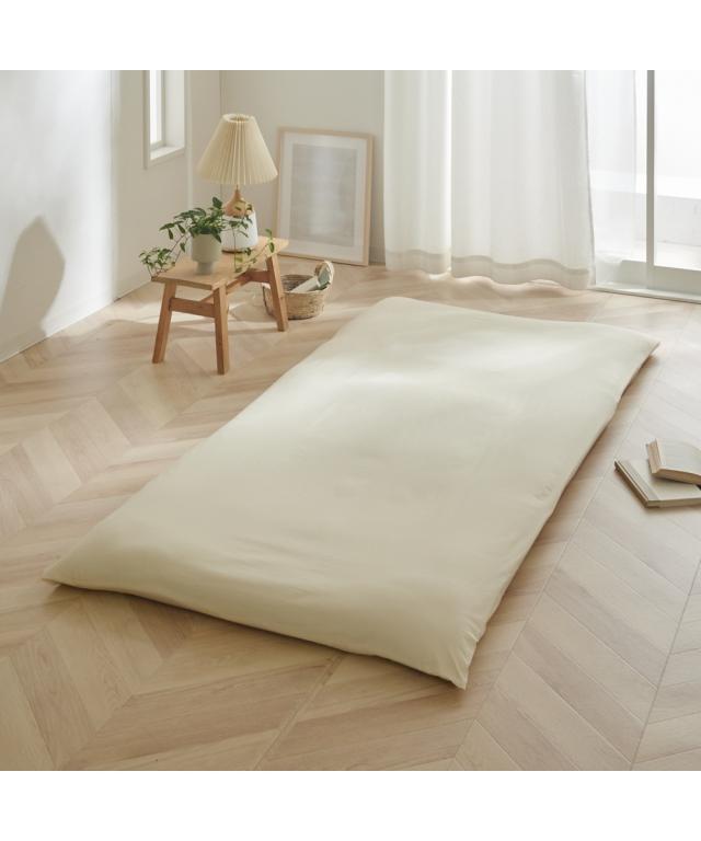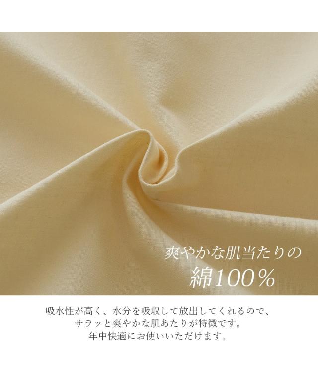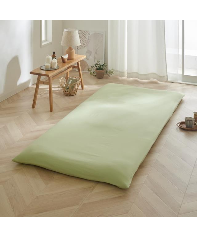 布団をすっぽり包む敷布団専用のカバーです。春らしい優しい色合いの3色をご用意しました。素材はサラッとした肌ざわりが楽しめる綿100%。綿素材は吸水性が高く、水分を吸収して放出してくれる働きがあり、下着などにもよく用いられている素材です。汗をかいても吸水性が高いので、爽やかな肌当たりが特徴です。年中快適にお使いいただける素材の一つです。