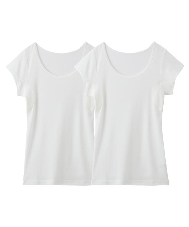吸汗速乾 綿混汗取り付フレンチ袖インナー2枚組