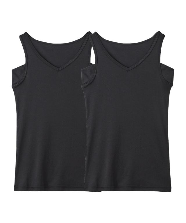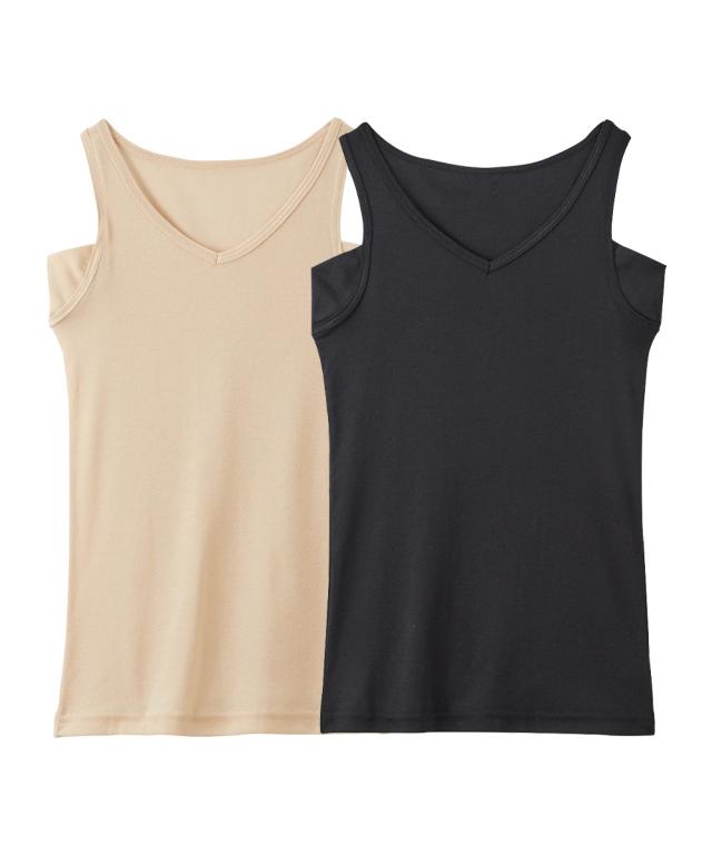 吸汗速乾 綿混汗取り付タンクトップ2枚組