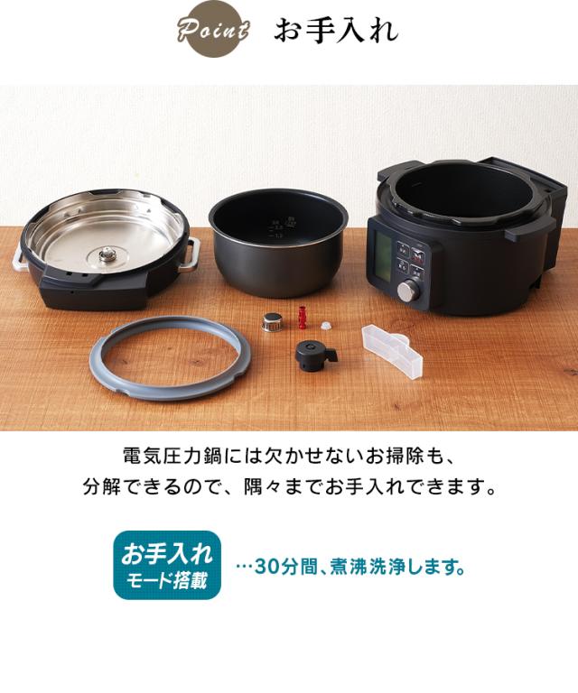 圧力調理でいつもの調理時間を短縮できる電気圧力鍋です。
