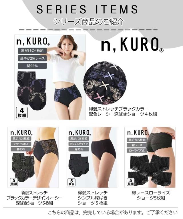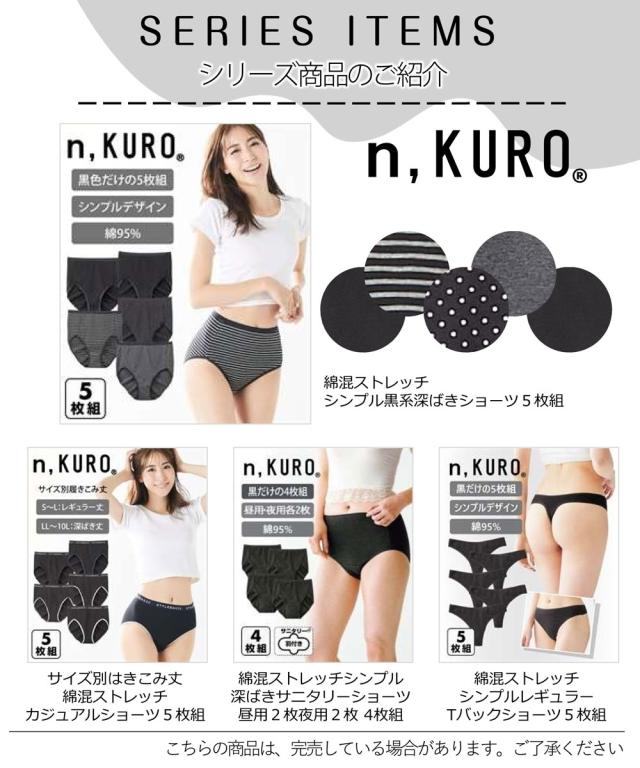 ショーツ スタンダード レディース 綿混 ストレッチ シンプル深ばき 5枚組 黒5枚 L インナー ニッセン nissen