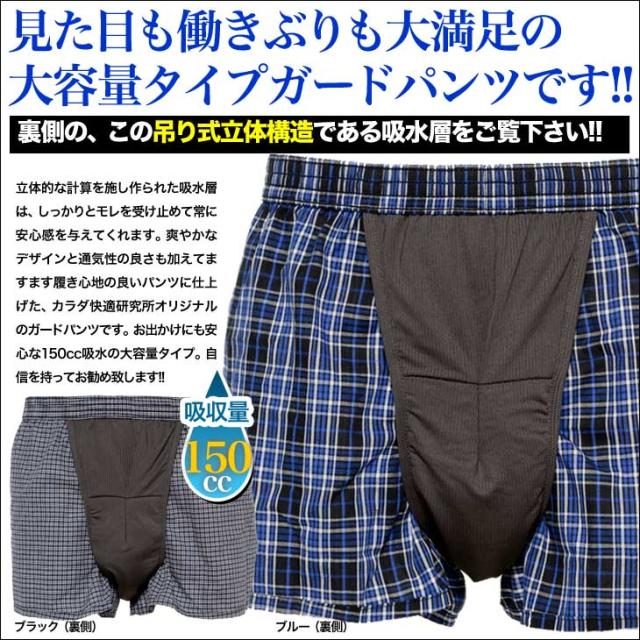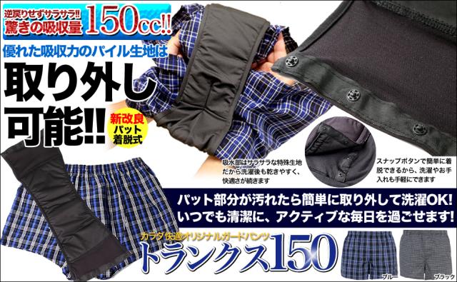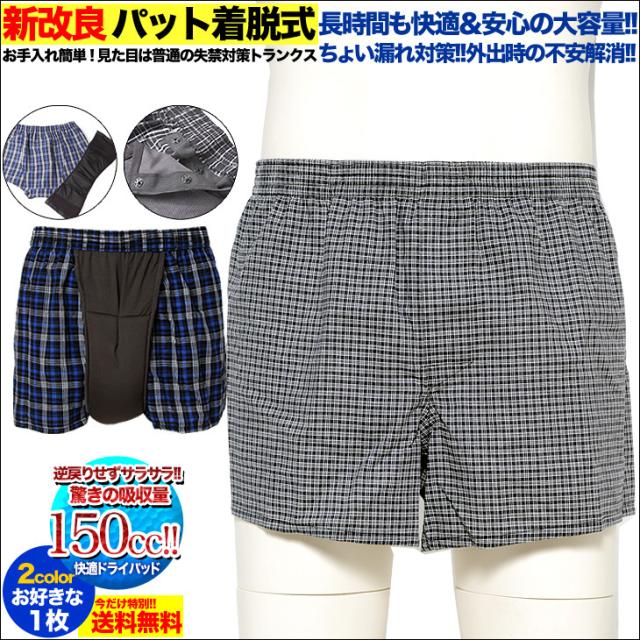 尿もれパンツ 失禁パンツ メンズ 送料無料 介護下着 トランクス 吸収量150cc 全2色 送料無料 パット交換タイプ ts-n-1