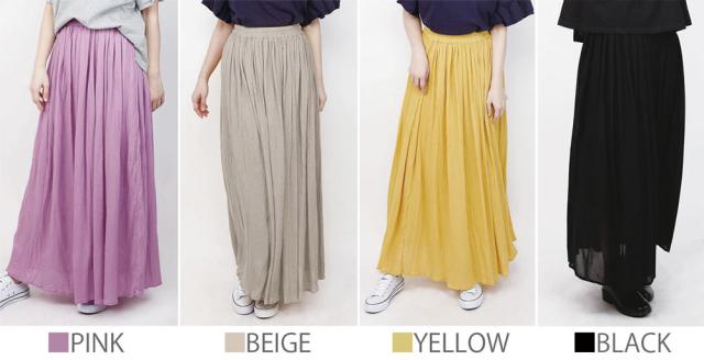 シフォンスカート レディース スカート 楊柳 マキシ丈 ロング丈 マキシスカート ボトムス 春 夏 パープル イエロー ベージュ【BELL】